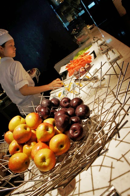 寒舍艾美酒店的Buffet真的超級難預約的喔 我可是快一個月前預定的 還是一般日的中午 受歡迎程度真是誇張阿! 這天是週一 我跟老公兩個人 以好奇的心態來到這邊 近來之後 哇! 真是整間 開放式廚房 有pizza區 正餐區 甜點區 沙拉區 都是開放式的 感覺就是花了不少錢來裝潢的