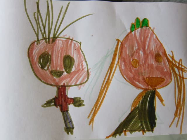 最近的進步, 畫畫開始會把男生畫進來了, 之前他真的不喜歡畫男生, 因為他覺得男生不漂亮, 也或許是老師也教他們畫男生, 之後彤也就開始畫他自己跟小樂