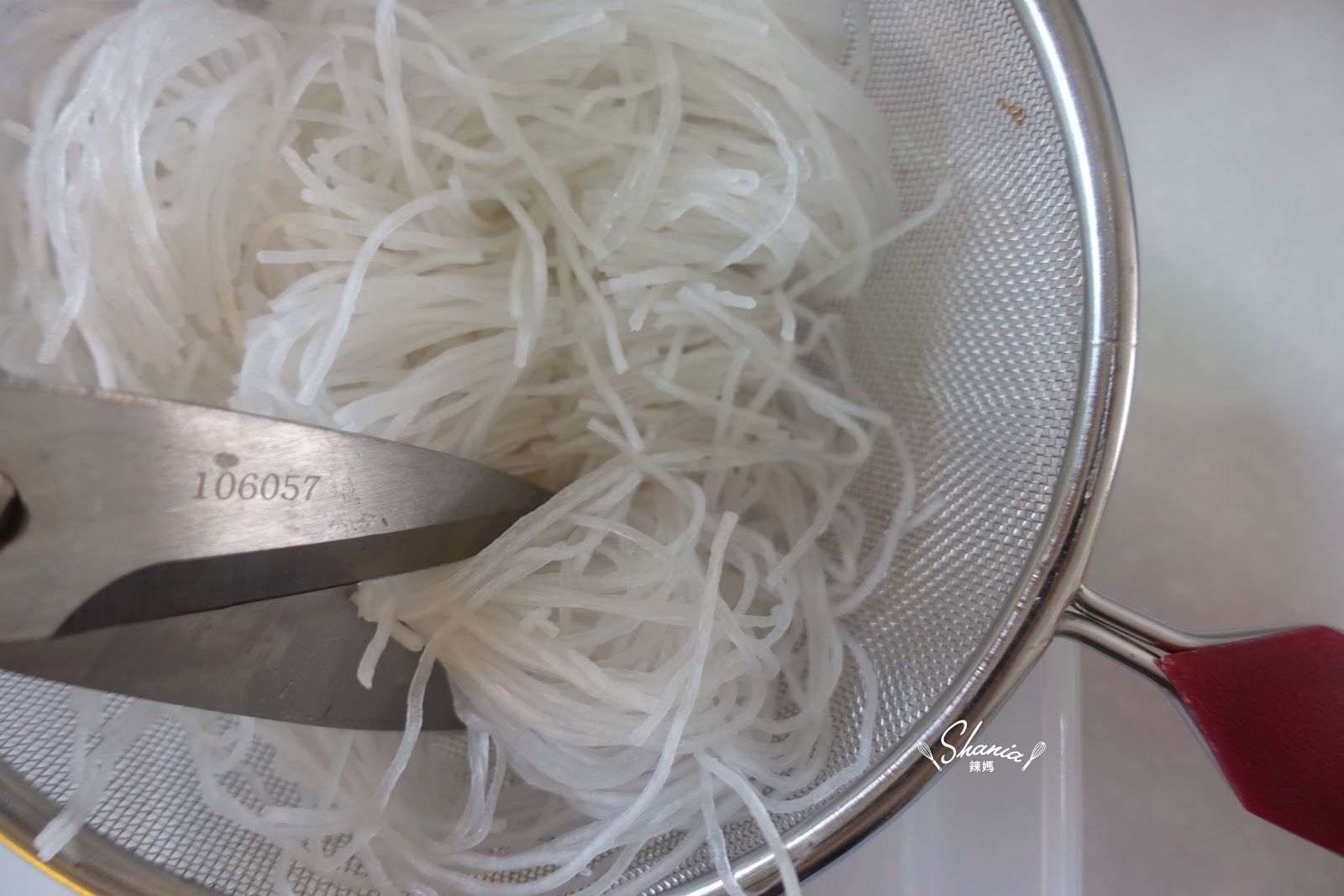 1.兩把冬粉用60度溫水浸泡3分鐘